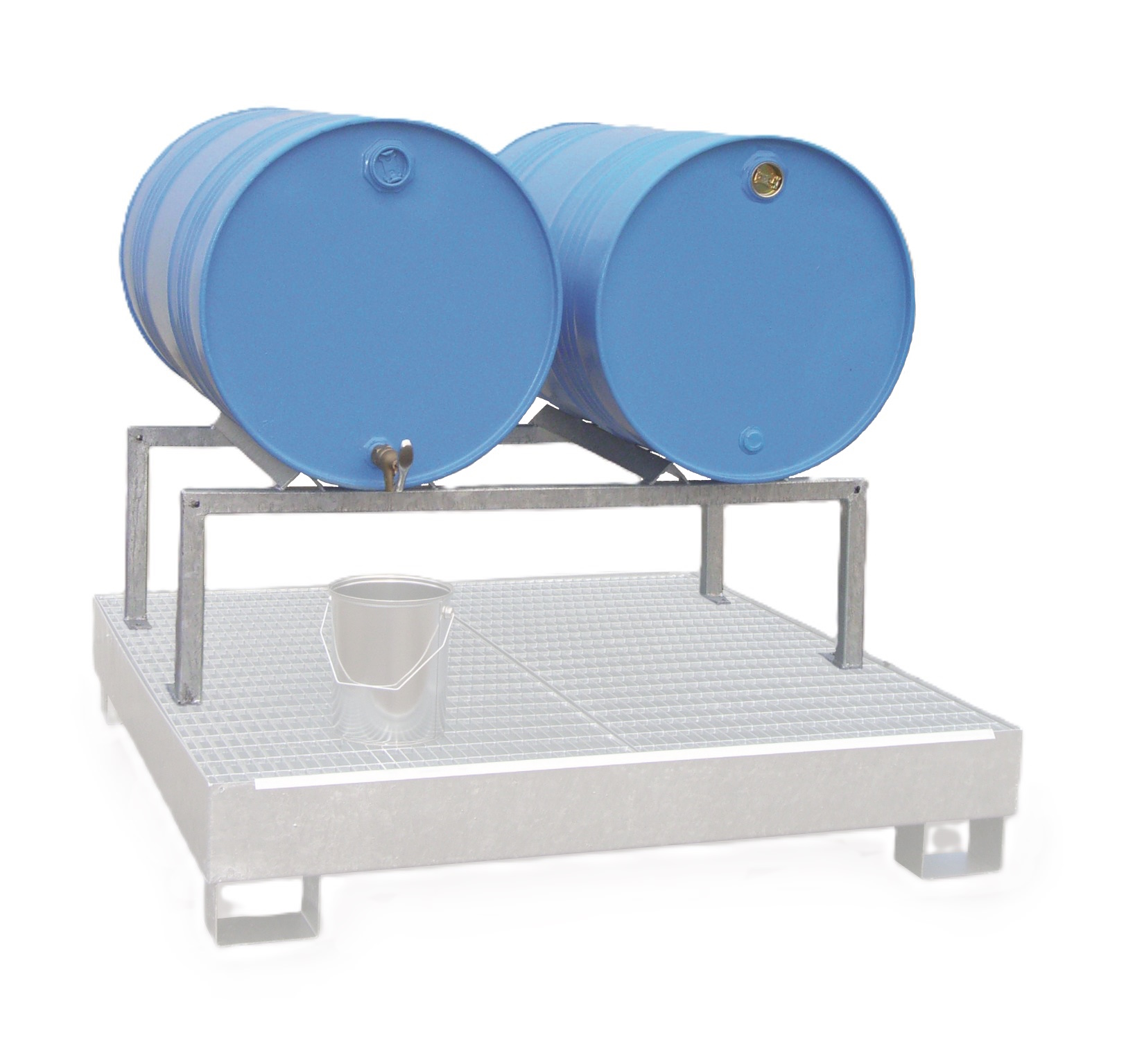 Fassböcke mit festen Fassauflagen für 200-Liter-Fässer, komplett feuerverzinkt. Fassauflage nach vorne geneigt für einfachere Fassentleerung. Fassböcke kombinierbar mit: