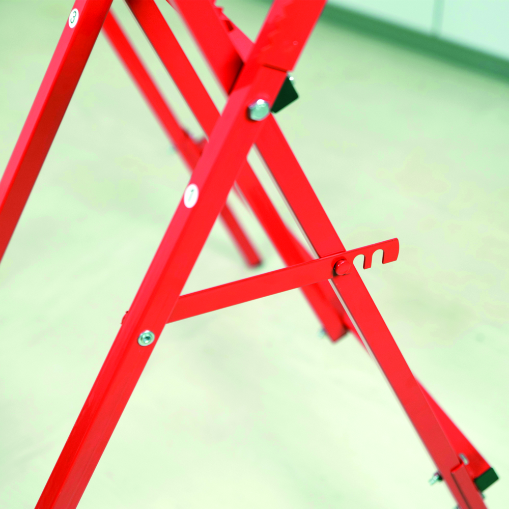 Verwenden Sie diesen leichten Sägebock zum Sägen von Holz. Es ist leicht zu transportieren, zu installieren und zu lagern. Verstellbare Höhe und Breite Zähne, um das Holz beim Schneiden stabil zu halten Zusammenklappbar und platzsparend