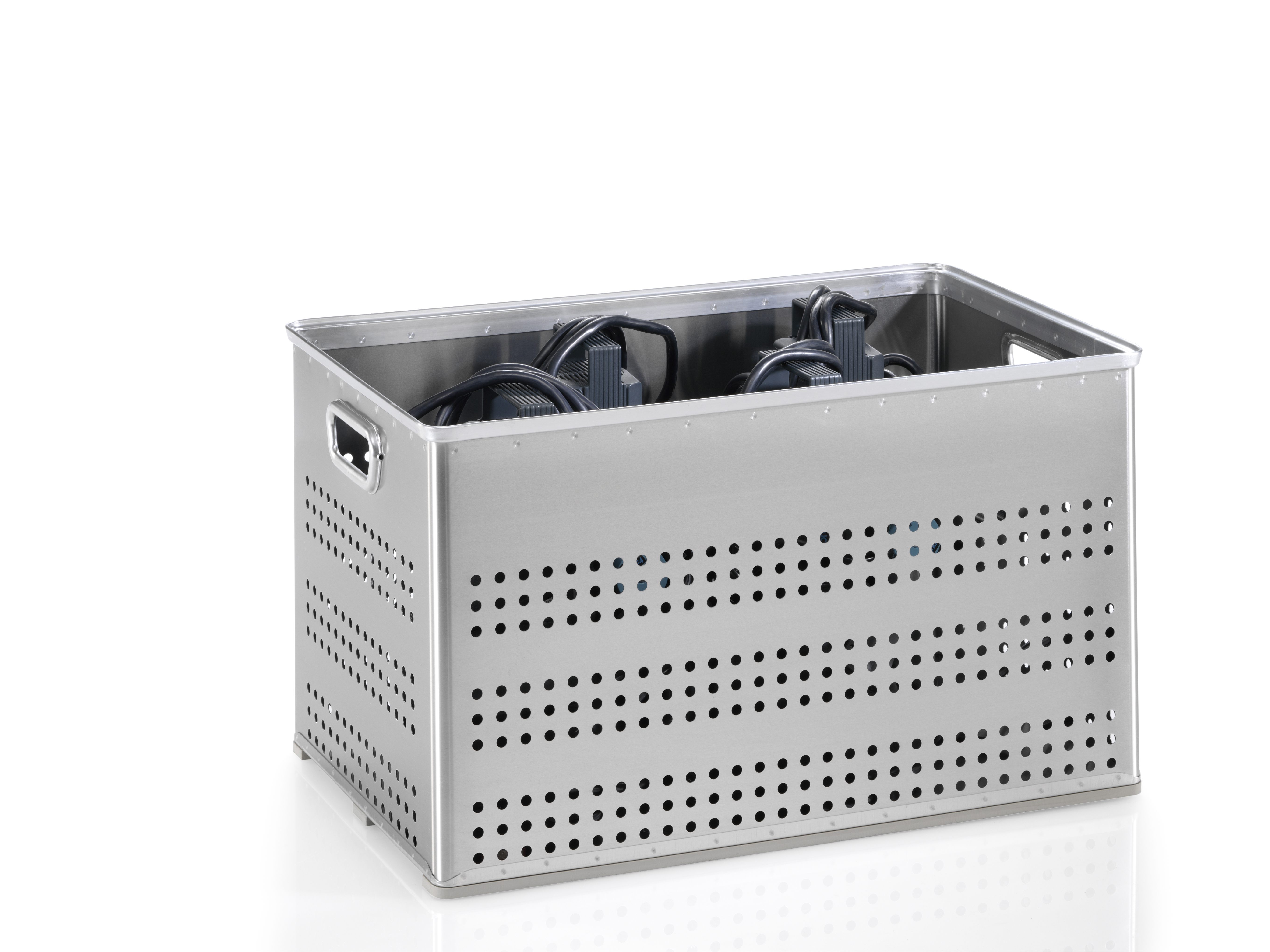 - Wahlweise mit gelochten oder ungelochten Wänden und Boden