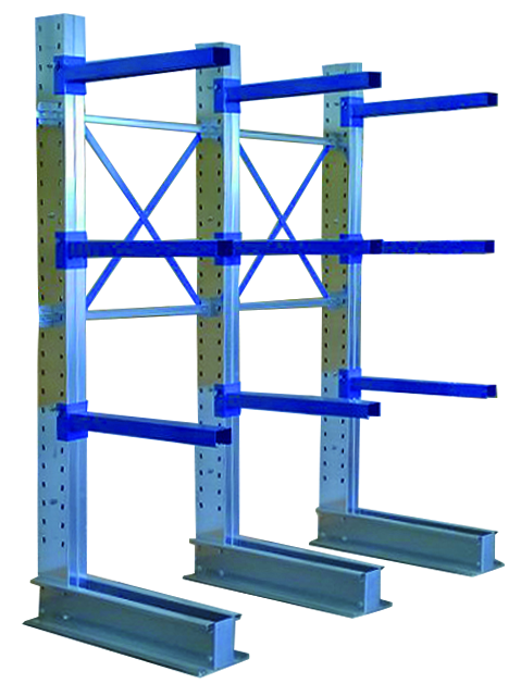 Kragarm-Regal leicht Typ CL Leichtes, hochwertiges Kragarm-Regal mit verzinkten Ständern für die Bedürfnisse der kleineren und mittleren Handwerksbetriebe. Für lange Lagergüter. Kragarme sind durch Steckbolzen leicht verstellbar. 3 Ständer mit Fuss einseitig,