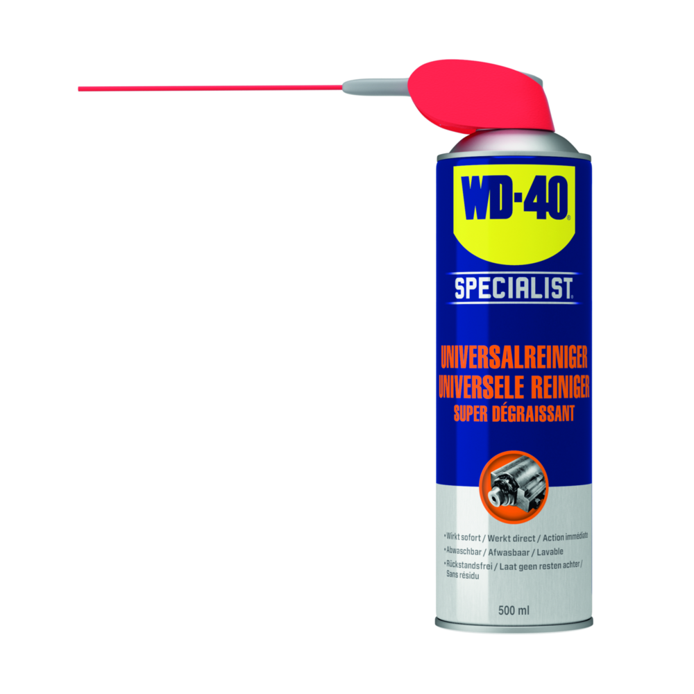 WD-40 SPECIALIST Universalreiniger ist ein schnell wirksamer Lösungsmittelreiniger und entfernt Fett, Öl, Schmutz und Ruß. Er wirkt direkt beim Auftragen, ist abwaschbar und rückstandsfrei. Dieses Produkt ist besonders gut geeignet für Metalle.