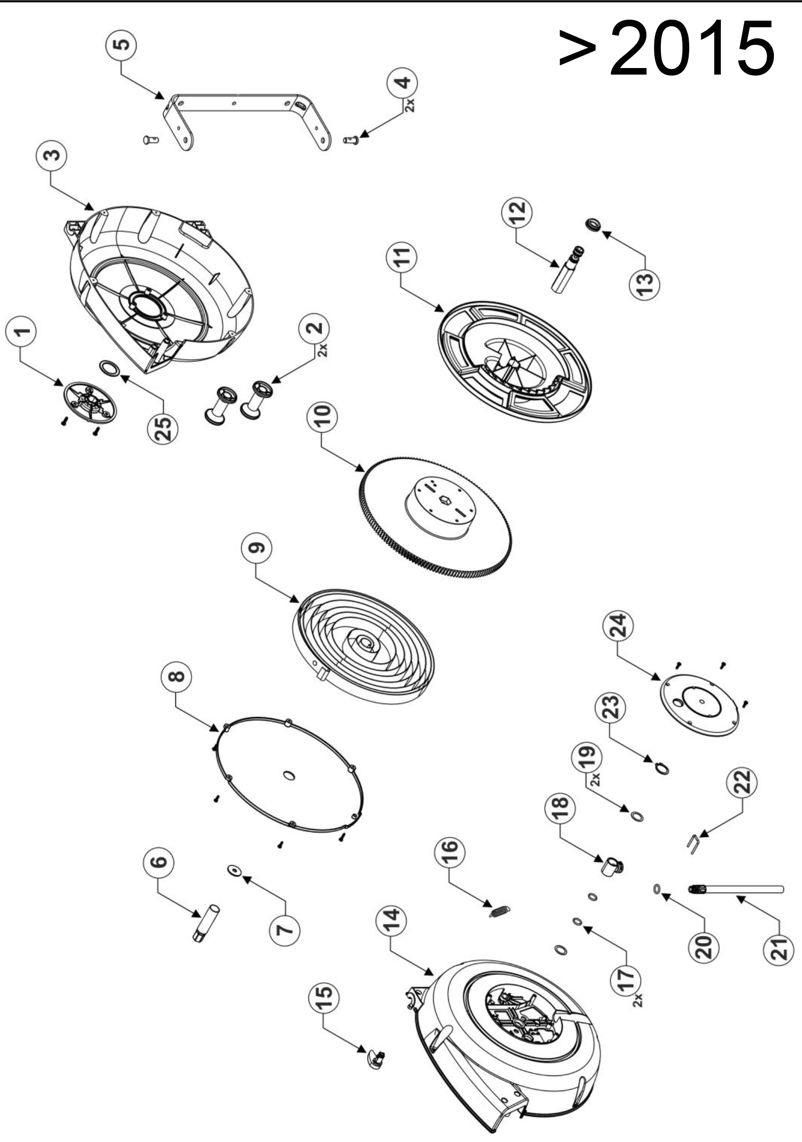 - Schlauchtrommel mit automatischem Schlauchaufrollsystem (die geführte Schlauchaufwicklung verhindert ein Durcheinander)