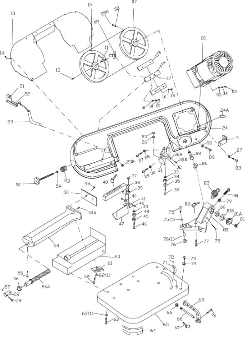 ✔ Sägebandführung mit Kugellagern – Sorgt für stabile und präzise Führung des Bands.