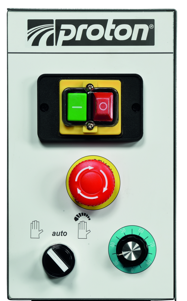 Die Proton BSS-260VT ist eine stationäre Metallbandsäge mit stufenloser Geschwindigkeitseinstellung über einen Frequenzumrichter. Die hydraulische oder manuelle Bandarm-Absenkung sorgt für exakte Schnitte, während der kugelgelagerte Schnellspannstock für komfortables Einspannen des Werkstücks sorgt. Der schwenkbare Sägearm ermöglicht präzise Schnitte sowohl nach links als auch nach rechts.