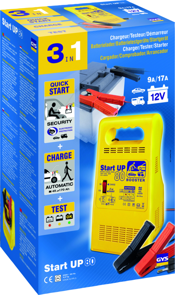 Das START UP 80 ist ein Multifunktionsgerät zum Laden und Starten von 12V KFZ-Batterien im eingebautem Zustand inklusive Schutz der Bordelektronik für PKWs und Campingfahrzeuge.