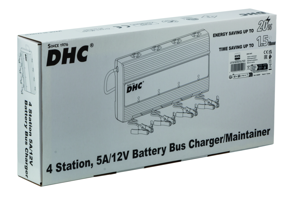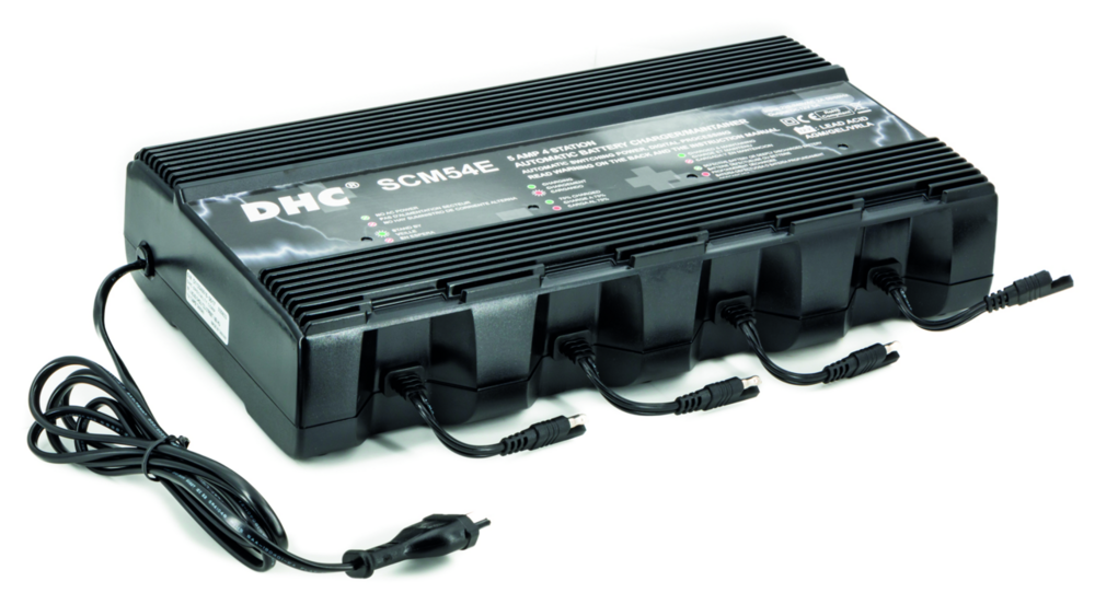 Das DHC 54 E ermöglicht eine 100%ige Ladung von bis zu 4 Batterien gleichzeitig.