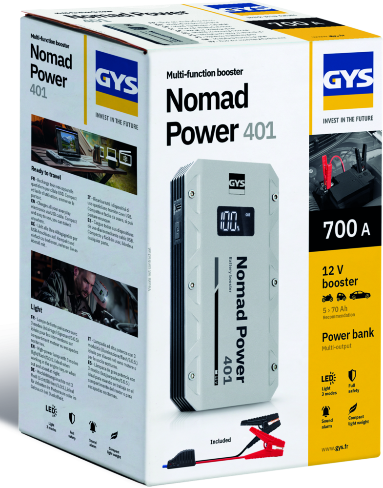 Das NOMAD POWER 401 ist ein echtes Leistungspaket auf Lithium-Basis, das 3 Funktionen vereint :