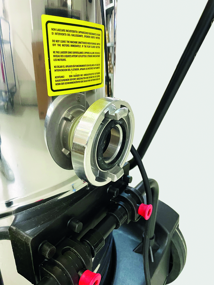 Wassersauger mit integrierter Pumpe zur automatischen Entleerung.