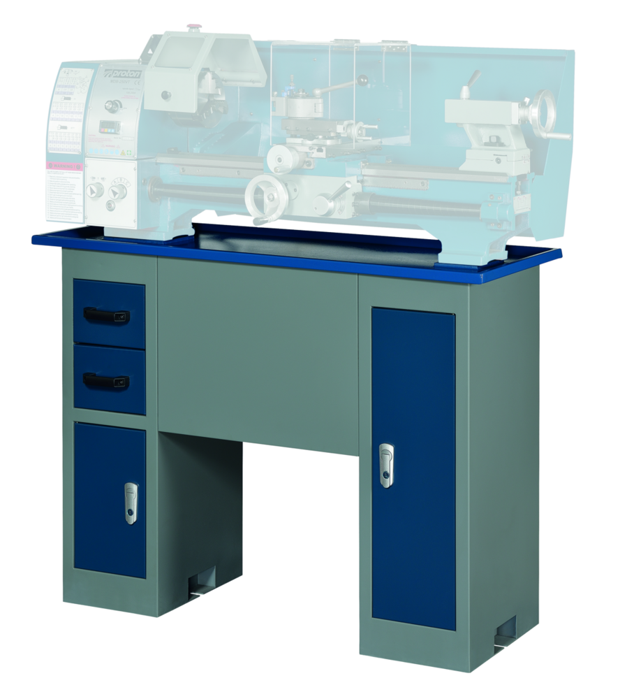 Praktischer Maschinenstand, für erleichtertes arbeiten auf angenehmer Arbeitshöhe. Der Maschinenstand bietet mit seinen zwei Schubladen und zwei Schränken genügend Stauraum für Zubehör.