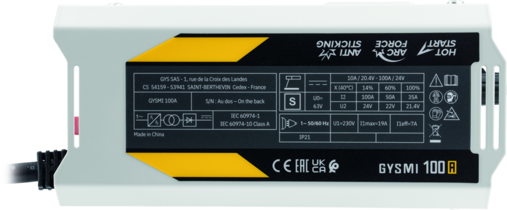 Das GYSMI 100A ist ein einphasiges, Inverter-basiertes E-Hand (MMA)-Schweißgerät. Es wird mit der