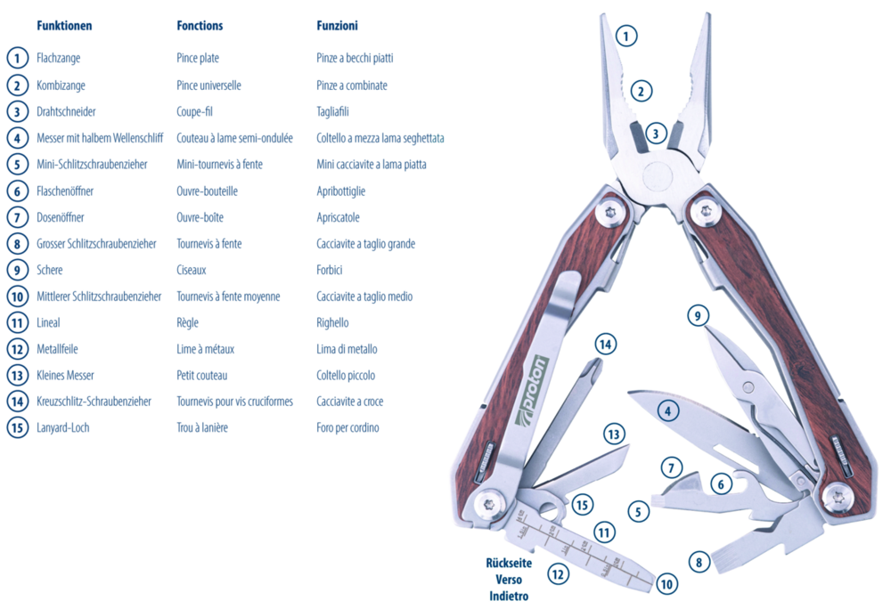 Produktinformationen "Multitool Proton Bushcraft mit 15 Funktionen"