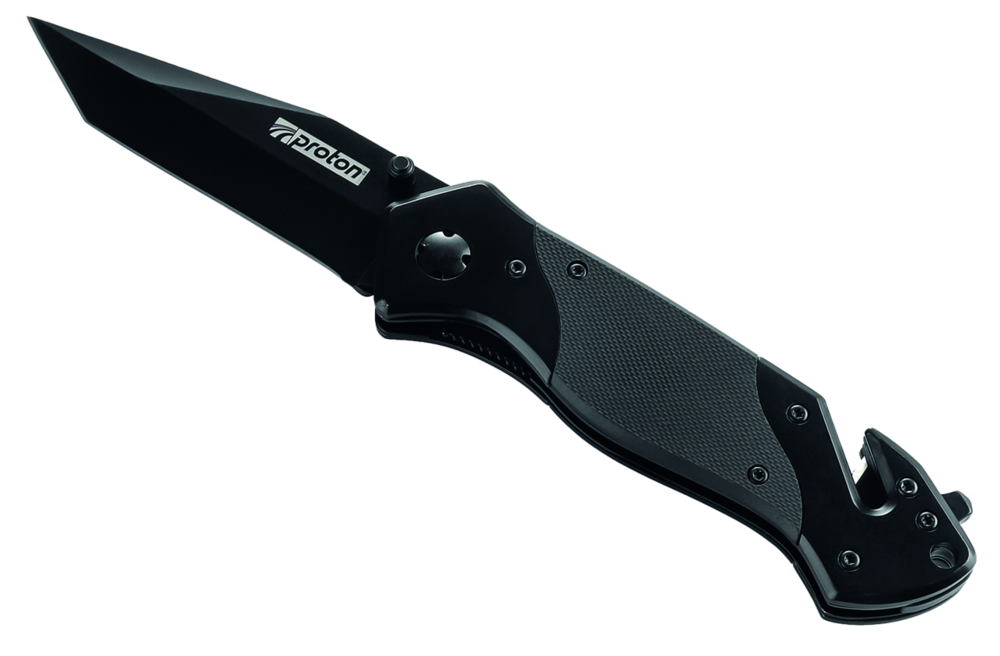Handliches Arbeitsmesser mit Klingenarretierung, Nothammer und Gurtschneider für mehr Sicherheit im täglichen Umgang.
