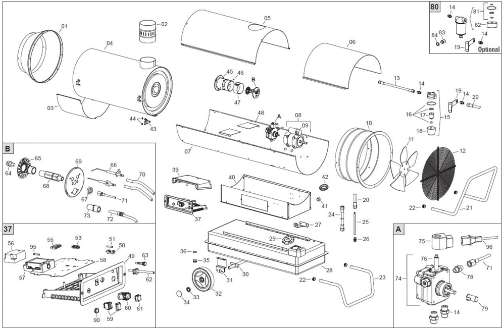 Für das Heizen und Trocknen von Baustellen, Werkstätten, Gewächshäusern, Tierzucht etc. ohne Abgase (diese werden durch einen Kamin abgeleitet).
