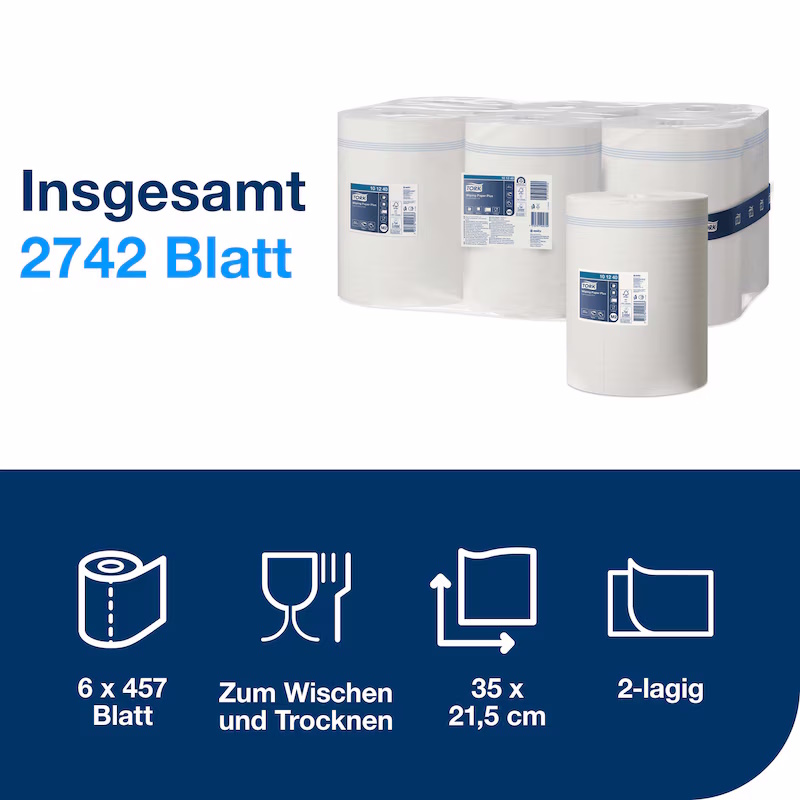 Die 2-lagigen Tork Starken Mehrzweck Papierwischtücher sind ideal zum Aufwischen von Flüssigkeiten sowie zum Abwischen der Hände. Sie eignen sich hervorragend für den täglichen Einsatz in professionellen Umgebungen wie Werkstätten, Industrie, Gastronomie oder Servicebereichen.