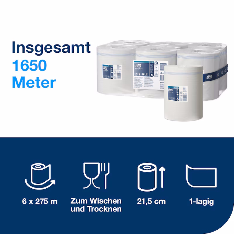 Die 1-lagigen Tork Mehrzweck Papierwischtücher eignen sich ideal für einfache Wischarbeiten sowie zum Abwischen der Hände. Sie sind die wirtschaftliche Lösung für den täglichen Einsatz in Werkstätten, Produktionsbereichen, Gastronomie oder anderen professionellen Umgebungen.