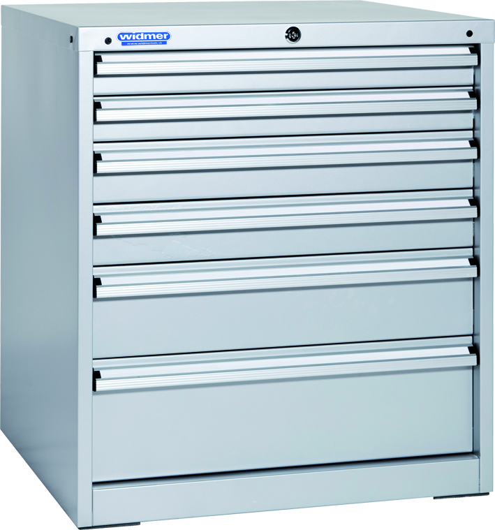 Jeder Schubladenschrank ist serienmässig mit einer Zentralverriegelung ausgestattet, die alle Schubladen gleichzeitig verschliesst.