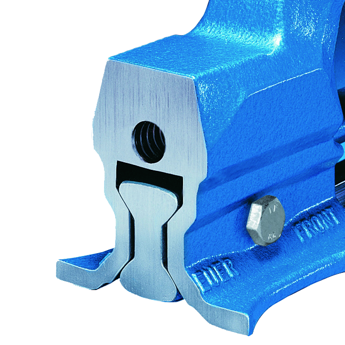 Schraubstock HEUER Front - Ganz aus Stahl geschmiedet, garantiert unzerbrechlich. Durch seine hochwertigen Einzelelemente überzeugt er durch Zuverlässigkeit, Langlebigkeit und Präzision. Geschützte Präzisionsspindellagerung, einfach nachstellbare, zentrische Führung. Grosse Tiefspannmöglichkeit aufgrund schlanker geschmiedeter Führungsschiene.