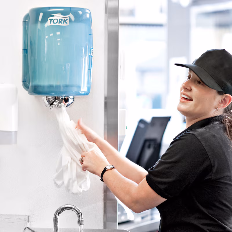 Der Tork Maxi-Innenabrollungsspender im Performance Design ist besonders effizient. Dank optimierter einhändiger Entnahme halten Sie das benötigte Papier rascher in der Hand. Tork Performance ist die neue Generation von Spendern für die professionelle Reinigung. Durch die richtige Kombination aus Spender und Wischtuch werden Ihre Produktivität gesteigert und Ihre Gesamtkosten gesenkt.